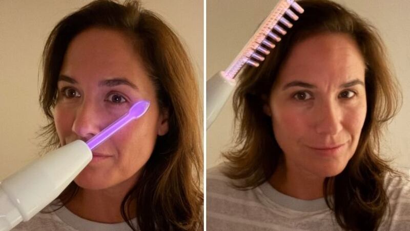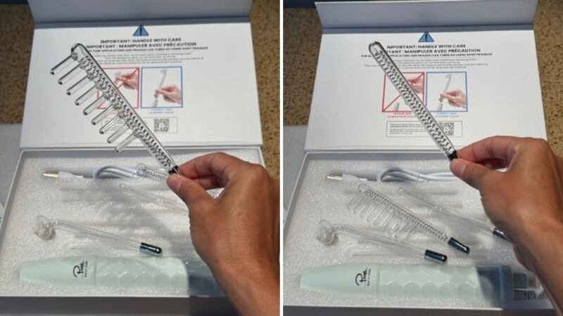 The NuDerma Professional Skin Therapy Wand uses high-frequency technology, a method commonly used in esthetics to safely and naturally stimulate the skin. The device relies on two gases — argon and neon — contained in its glass tubes. Each gas serves a specific purpose: