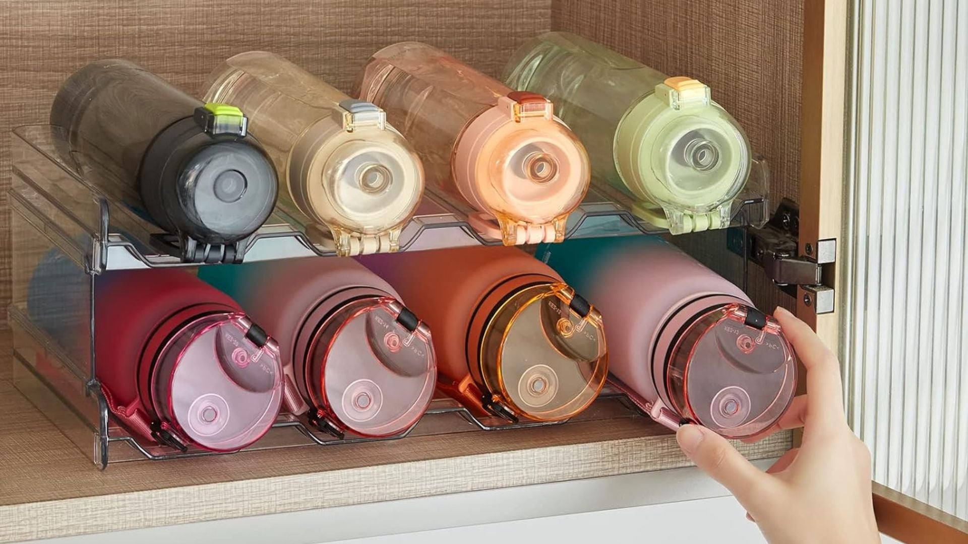 The first thing to do is take everything out of your cupboards so you can give them a good wipe down, and get an inventory of everything you have that needs a neat, easy-to-access home in your kitchen. That also means channelling a little Marie Kondo magic to let go of the things you don’t need anymore. Be honest about what you use regularly and what you can live without, and think about how you actually use your kitchen to make a strategy for where everything should be put away for maximum efficiency. Group similar items together, like spices, baking supplies, and canned goods, and don’t be afraid to get a little creative with the depth and vertical space your kitchen cupboards have to offer.