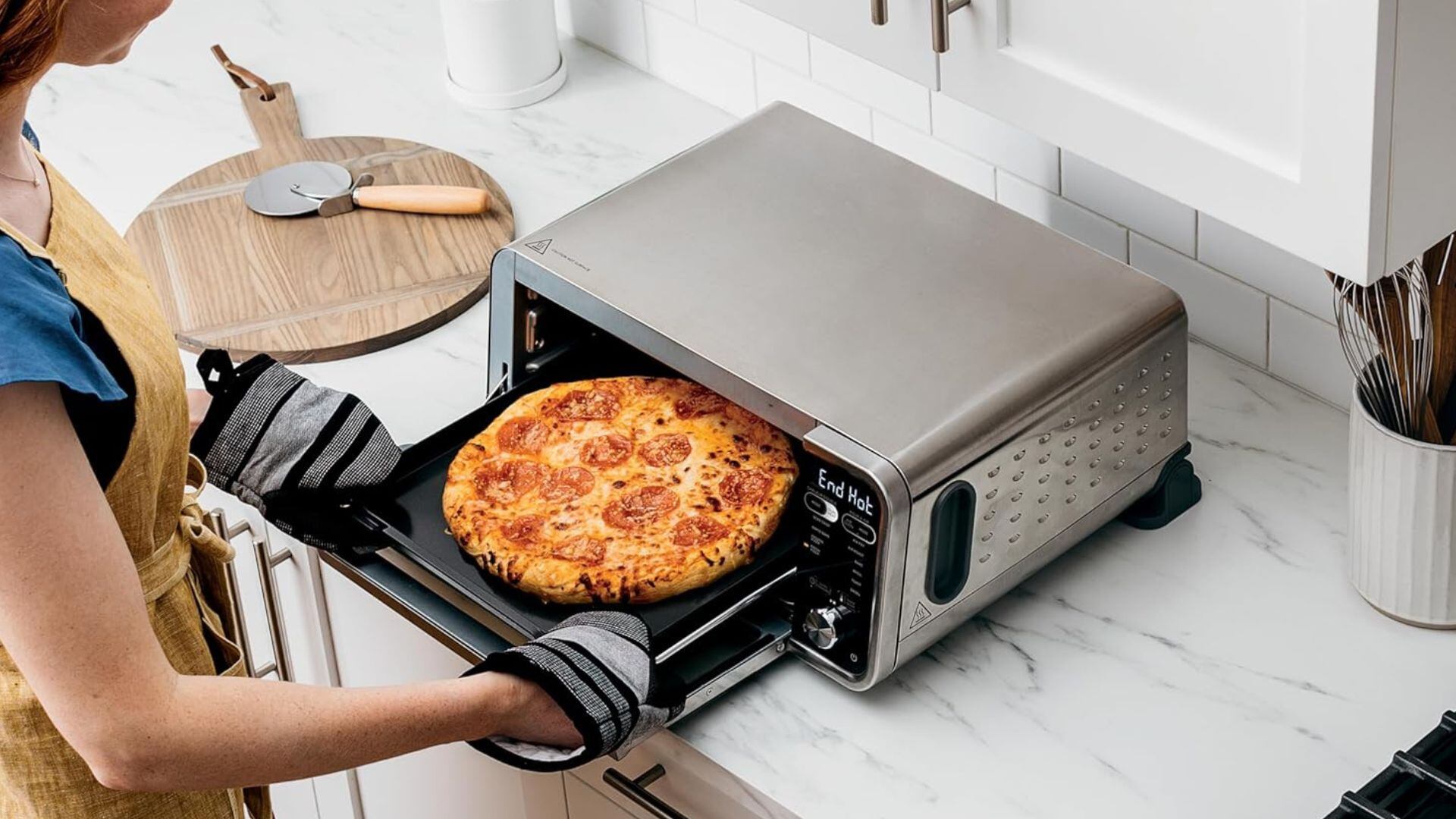 I love that the glass door allows me to keep a close eye on whatever’s inside, so I’m not surprised by what comes out. It even has settings to heat up frozen pizza or warm up a slice from the fridge, and they come out with soft, melted cheese, and a crispy crust every single time.
